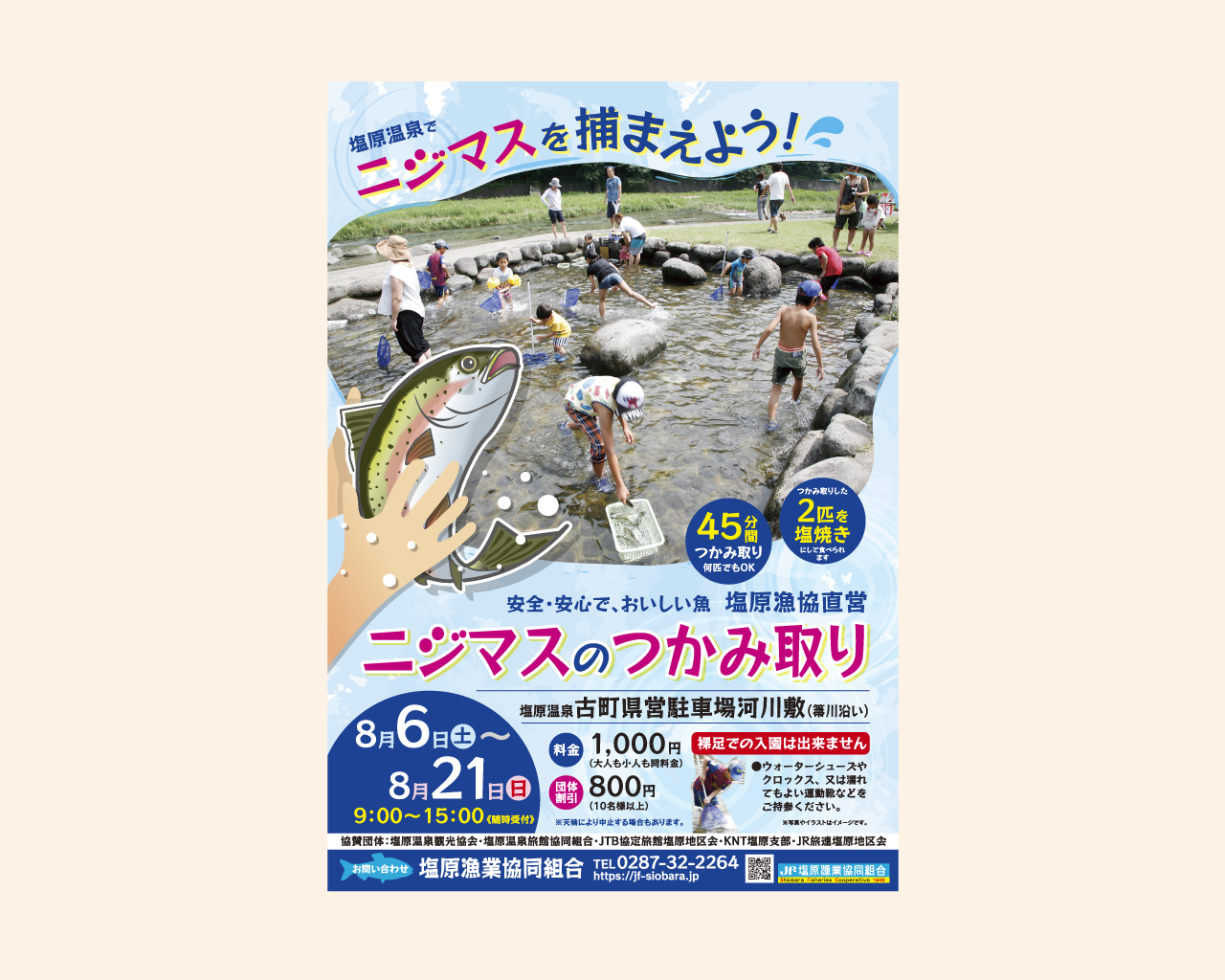 塩原漁業協同組合様ニジマスのつかみ取りチラシ印刷