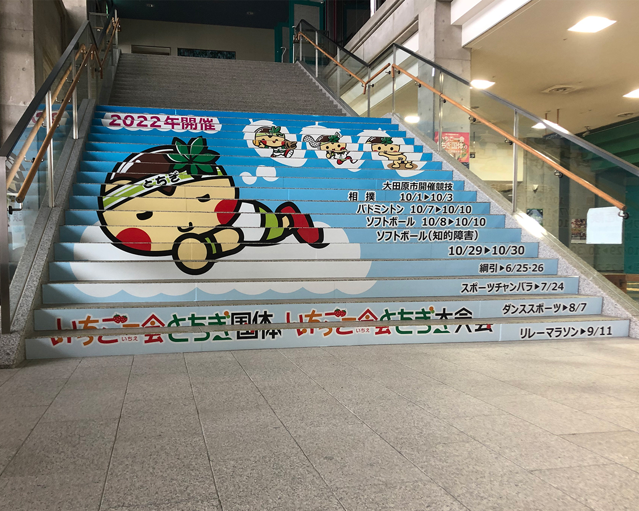 いちご一会とちぎ国体・とちぎ大会大田原市実行委員会様 栃木県立県北体育館内階段ラッピング