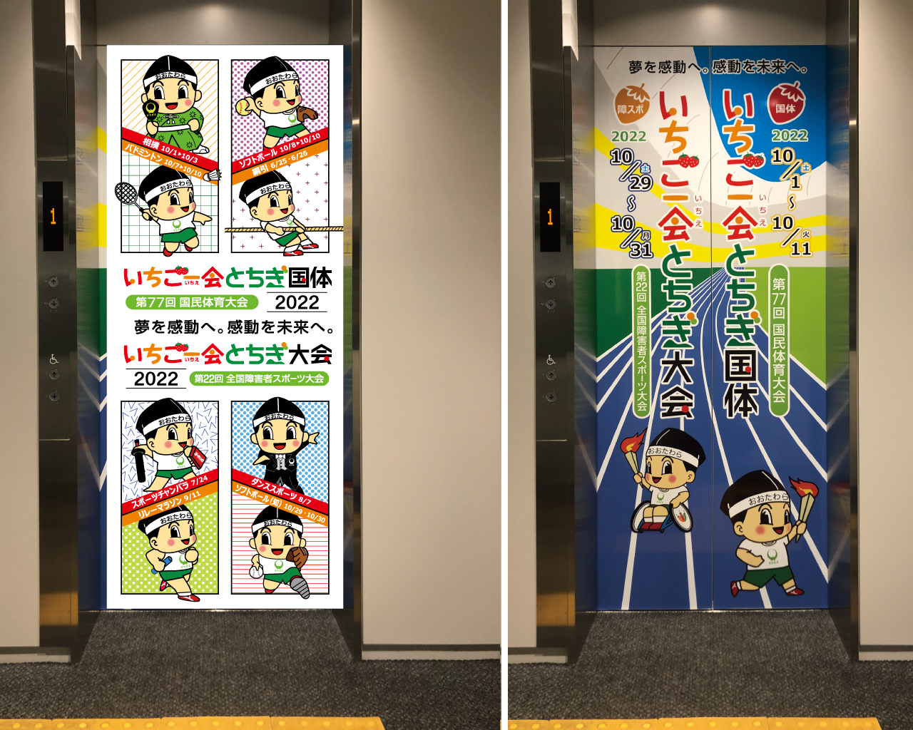 いちご一会とちぎ国体・とちぎ大会大田原市実行委員会様 大田原市役所内エレベータドアラッピング