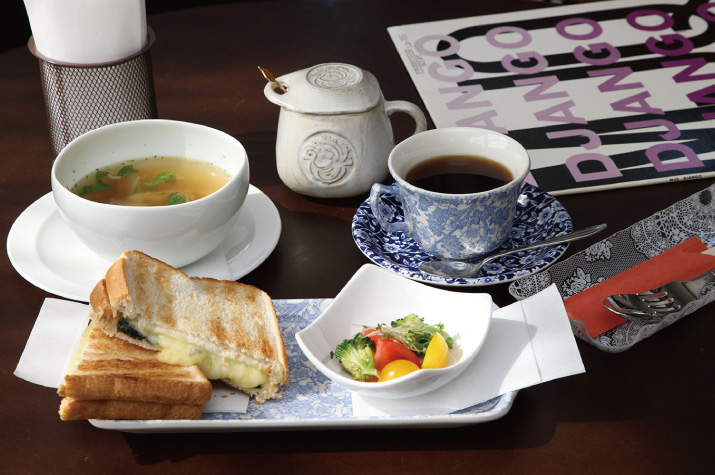 - 逸品:のりとチーズの和風トーストサンド。ひよこ豆のスープとコーヒー付 700円(税込)